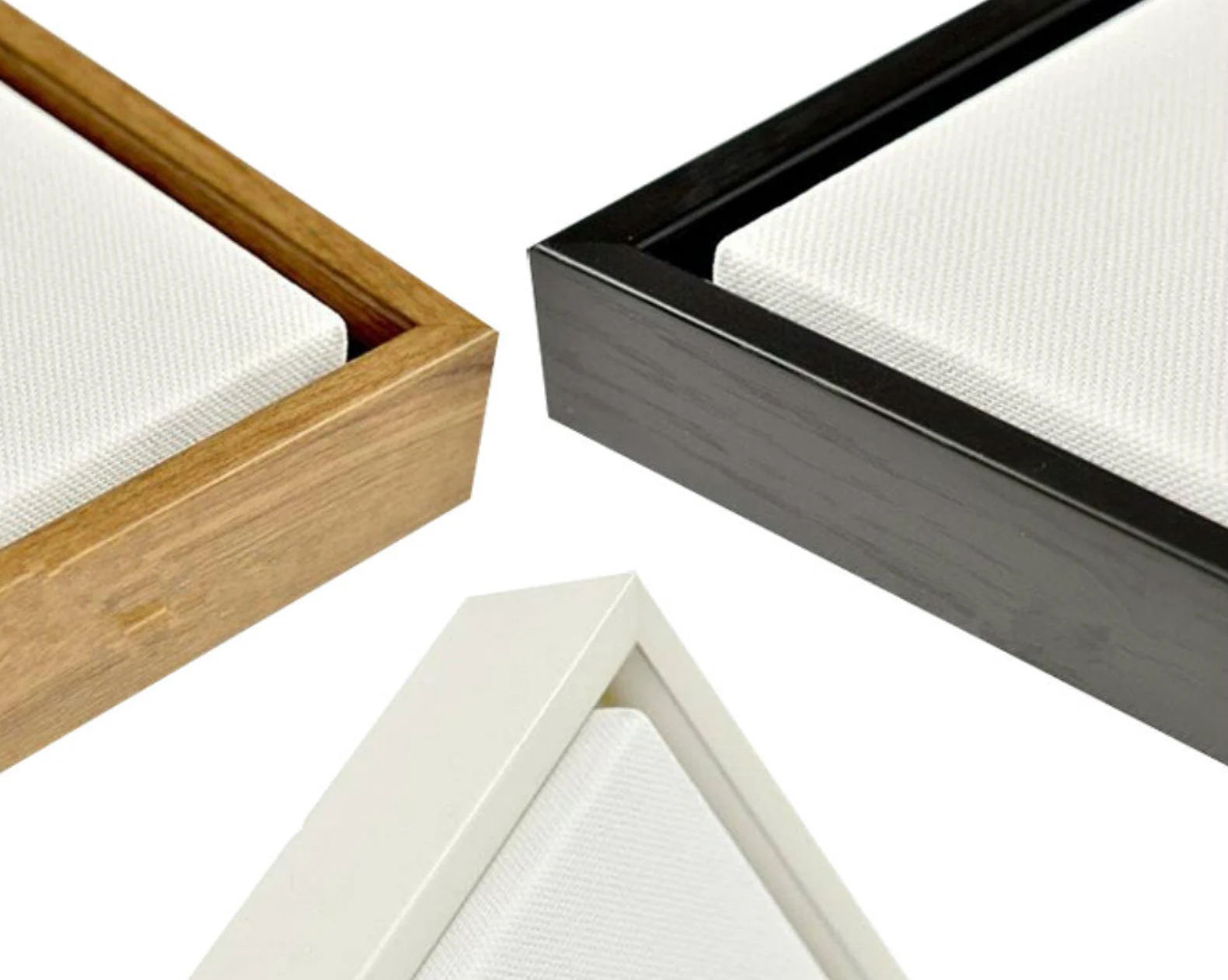 A floating frame creates a suspended effect, making the canvas appear to "float" within the frame without touching the edges. This adds depth and a striking visual impact. Available in natural wood, white and black.